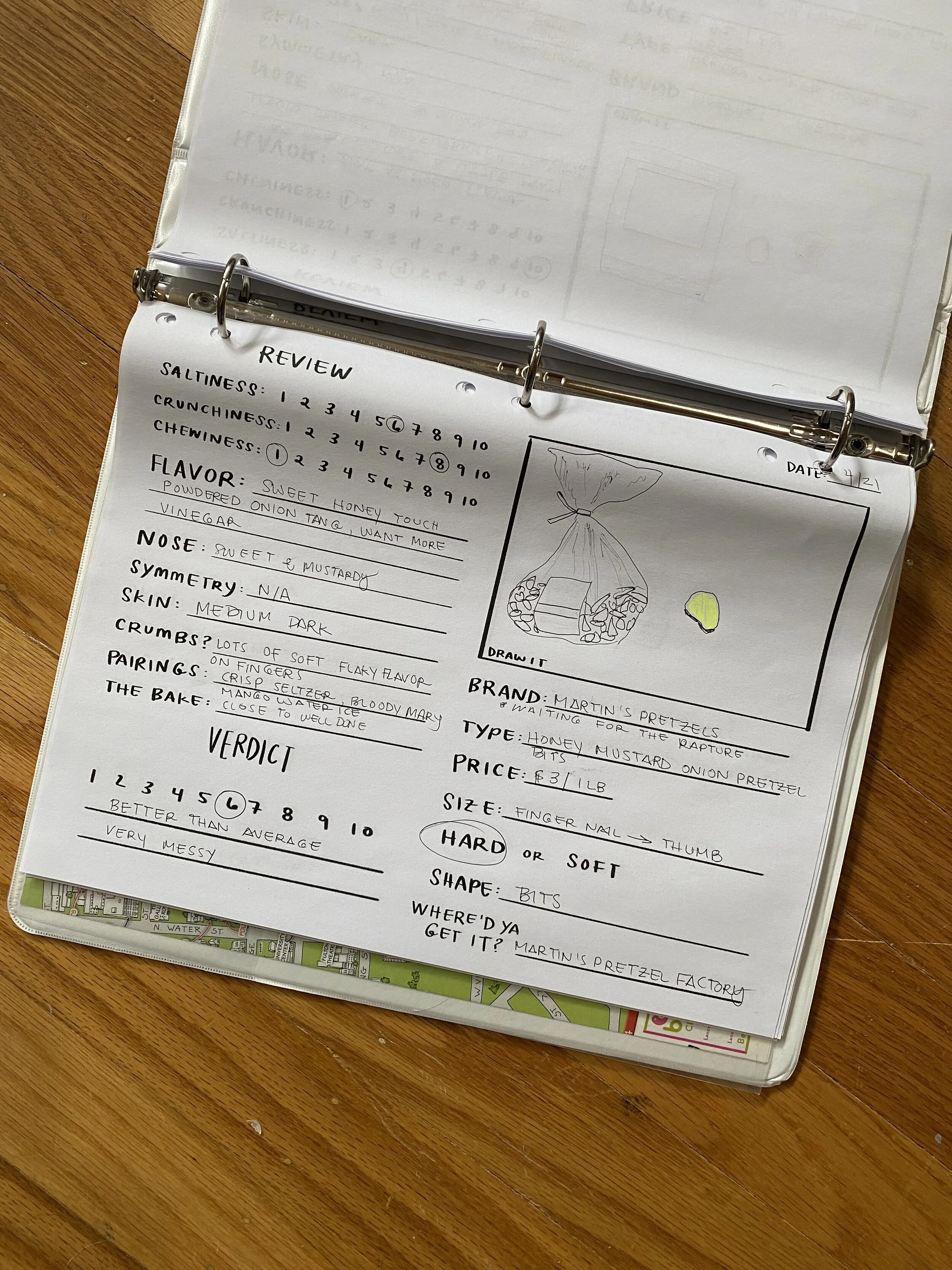 Because nothing screams fun like making a binder and a system, we each made our own binders (right) to house our pretzel tasting and grading rubric (below).